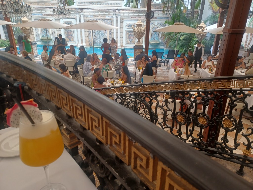 They fairly cram in the tables – hope we’re not sitting next to the mosaic pool because everyone ends up standing there with their cameras and phones…