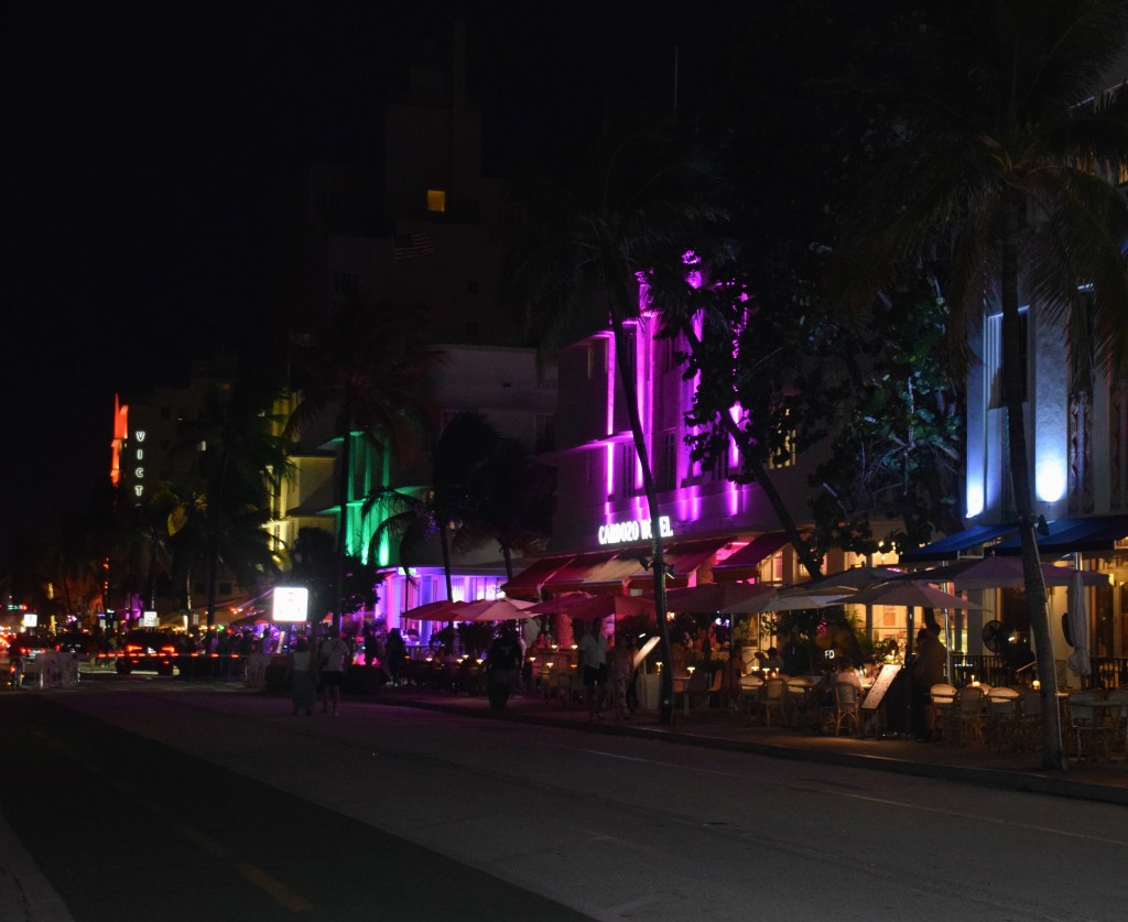 You can pop in to the Art Deco Welcome Centre and pick up their free pamphlet which identifies 110 buildings along Ocean Drive and its neighbouring streets. It’s worth lingering a while and familiarising yourself with the history of the era and its main features and designs. Or maybe you’d like to join one of their guided walking tours. Most visitors are happy, however, to just wander and enjoy the iconic geometric patterns, pastel colours and preserved signage…….
