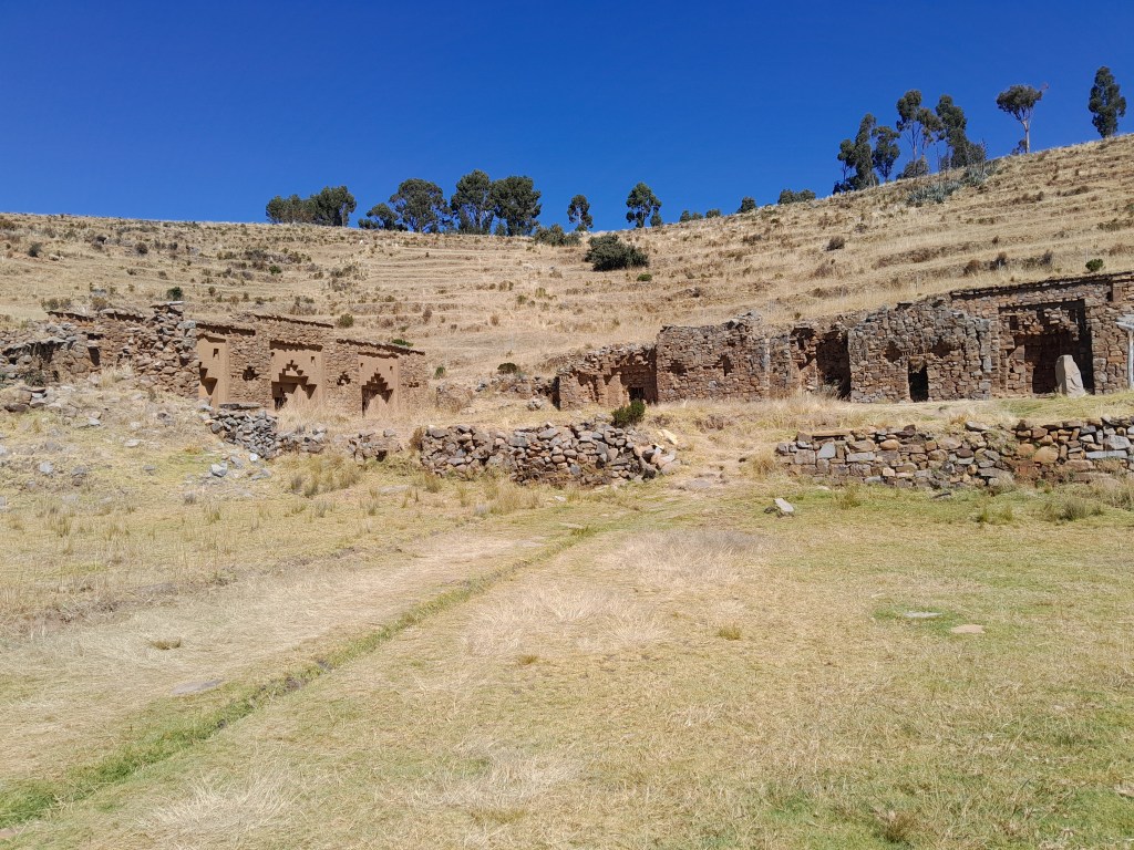 Inak Uyu is approached via a set of terraces leading up from the dock. The U-shaped complex in a natural amphitheatre has been partially reconstructed. It was once plastered and painted red and yellow. Interestingly, much of the design is not Inca at all but dates back to the Tiwanaku civilisation.