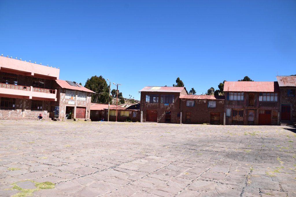 A visit usually includes a walk along the the top of the island – wonderful views – you can see the snow-capped peaks of Bolivia far in the distance! There is a local weaving cooperative in the main square and, depending on timing, your visit might coincide with a traditional dance performance.