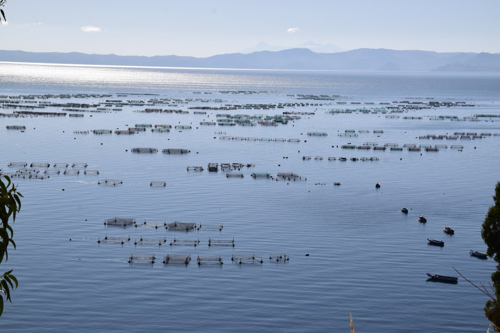 Leaving Puno and heading around the lake away from the tourist hot spot, offers up a completely different version of life here. Over 3 million people depend on Lake Titicaca for agriculture and livestock farming (sheep, llamas). On one side you’ve rolling terraces – where small farmers grow their potatoes, beans, quinoa – on the other, the floating cages of trout farms hang along the lakeshore.