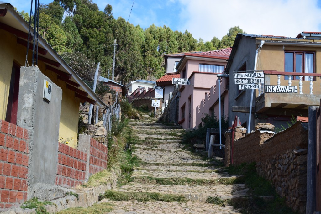 The village of Yumani is approached from the harbour via 206 Inca steps and offers a selection of accommodation and eateries. Even that climb can present a challenge, bearing in mind that you’re already 3800m above sea level and now adding another 200m by the time you reach the village!!