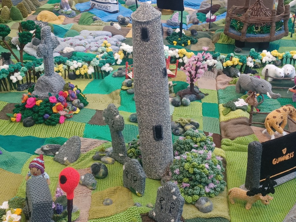 1. What a brilliant exhibition or display, Marie. We’ve done something similar here on the Isle of Wight but not in such amazing set pieces. We’ve done things like covering Post Boxes, walls, special features etc., but what Ireland’s done leaves me speechless. Such a lot of talent there, not just in the knitting but in thinking about it and designing it. Thanks for letting us see this. Incidentally, some of your photos won’t enlarge at all so I’ve missed some details. Any idea why?