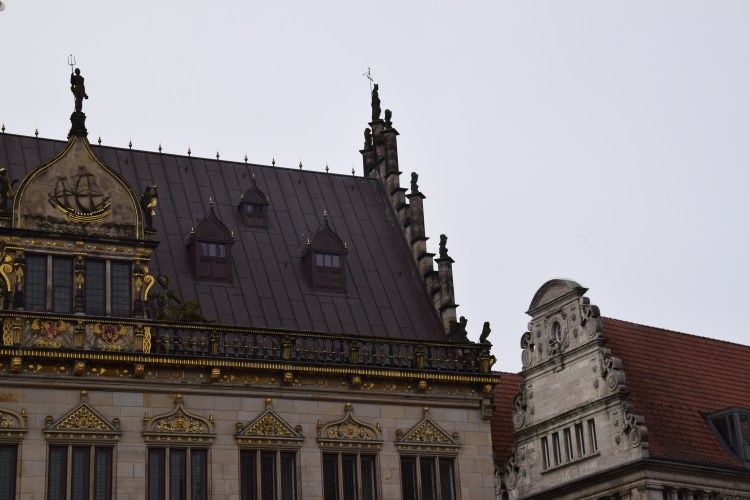 ‘OOPS, SORRY‘ ( in every language) must be the most frequently used expression in Bremen as visitors collide with each other while gazing upwards as they wander through the beautiful city centre! Beautiful architecture might be guaranteed but not, alas, that blue sky!! However, even the dullest of days won’t take away from the splendour…..